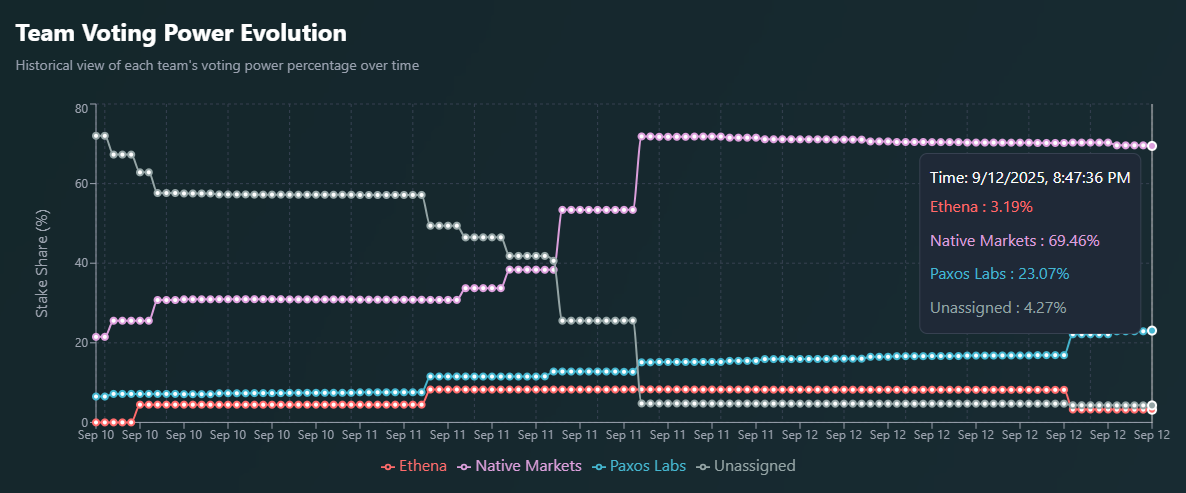 Native Markets continues to be the chief in validator voting energy, and its plan to spice up airdrops on Hyperliquid could also be realized after the tip of the vote. | Supply: USDH Tracker