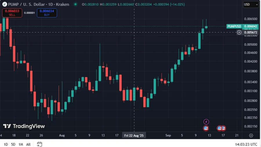 This spectacular worth motion occurs as Pump.enjoyable continues implementing its buyback program. On September 2, the meme coin Launchpad community introduced an aggressive buyback initiative for its native PUMP token. To this point, this system has eliminated 12.2 million value of PUMP tokens from circulation. One other key driver for the token’s current worth motion is the itemizing of PUMP on Binance.US. On September 10, Binance.US opened buying and selling of PUMP within the crypto buying and selling platform, a launch that considerably boosted the demand for the asset.